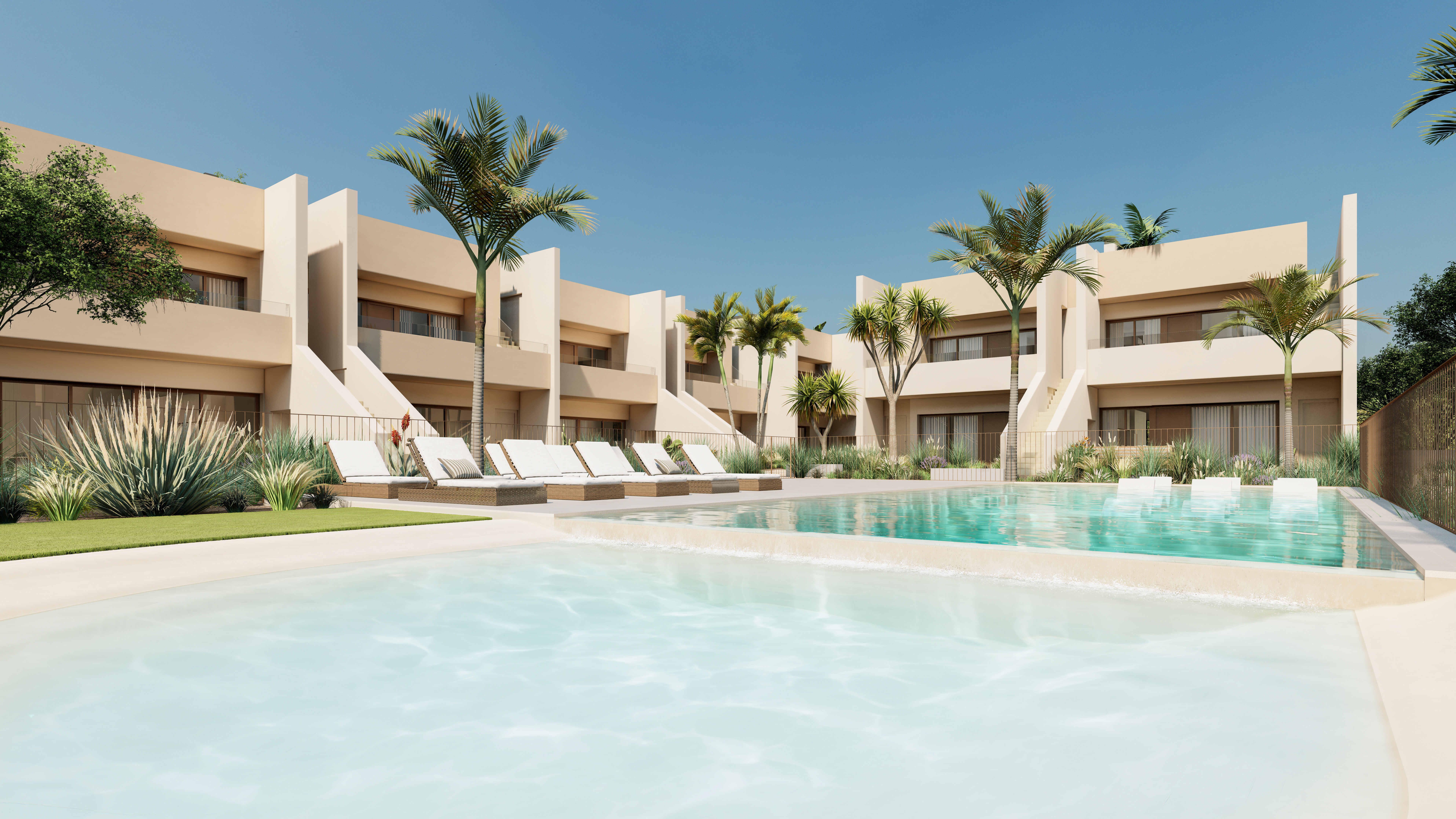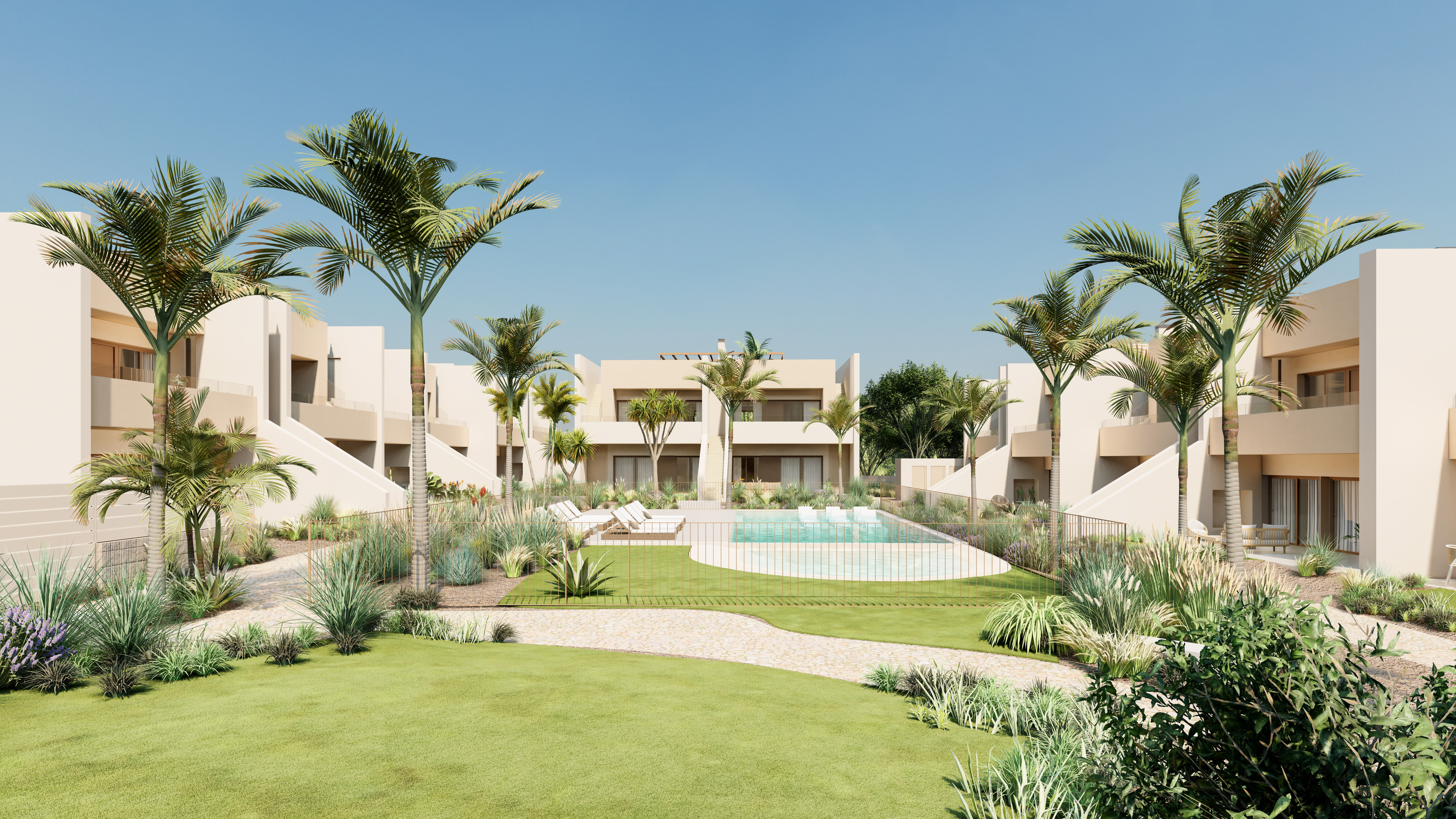An exclusive development of 3 bedroom 2 bathroom ground floor and penthouse bungalow apartments inside the prestigious Roda Golf & Beach Resort