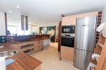 Surfaces • Built area: 122 m² • Usable area: 110 m² • Glazed terrace: 10 m² Interior layout • Bedrooms: 3 with natural light and built-in wardrobes • Bathrooms: 2 full (one en suite) • Kitchen: Equipped with central island • Independent laundry room • Living room: 40 m² with access to glazed terrace