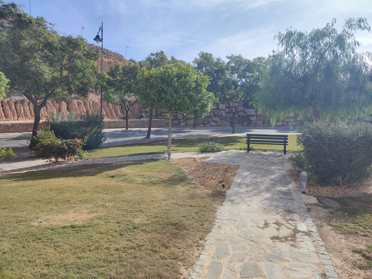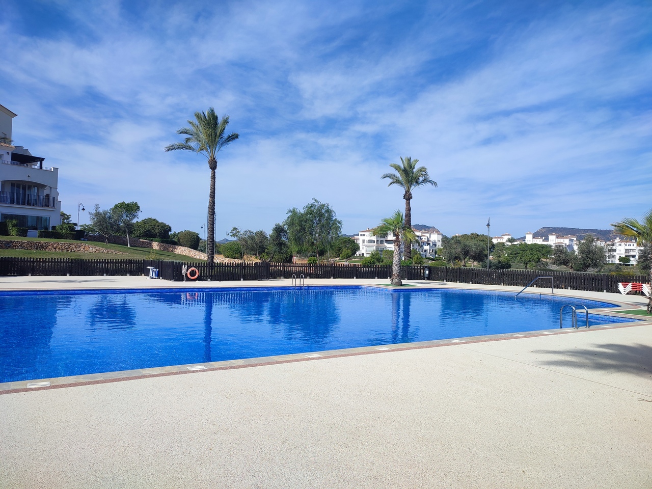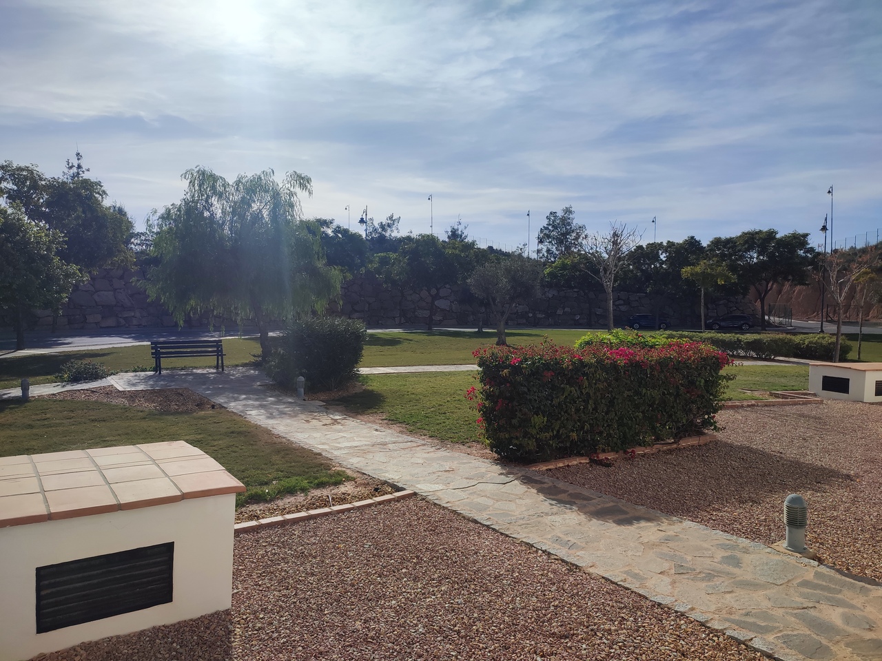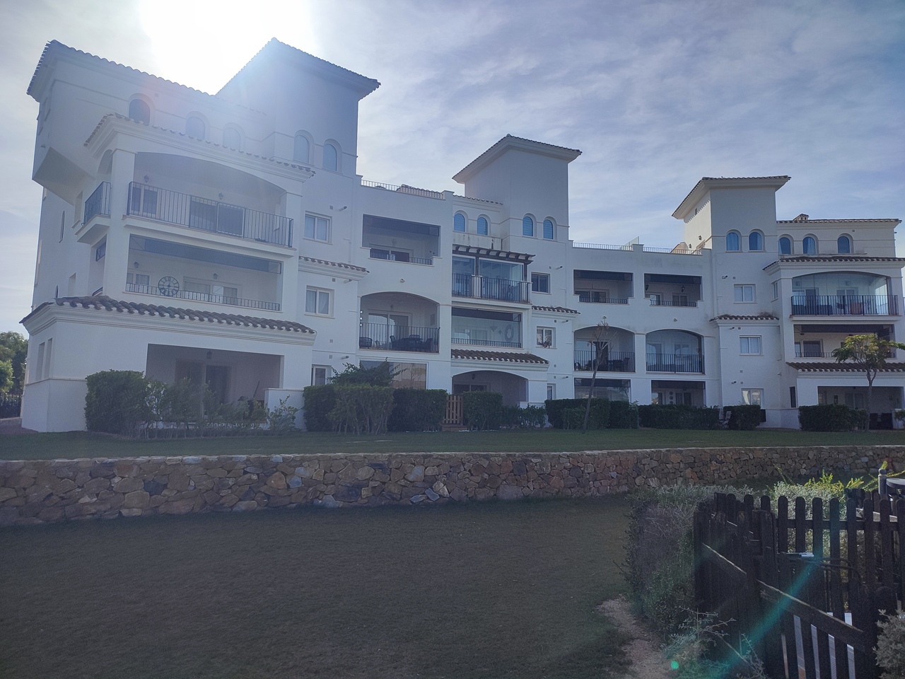 This ground floor corner garden apartment has the largest overall plot size available on Hacienda Riquelme and has lovely views over the gardens, swimming pool and to the mountains. The popular curved wall design apartment has a great sized kitchen and being on a corner also benefits from extra windows in the lounge and bathroom. Furthermore, if required, the design of this style of apartment can easily be made open planned and the opportunity to add a second bathroom if required. The property has air-conditioning throughout for summer and central heating for winter. A private underground parking space is also included in the sale.The apartment is being sold furnished minus personal possessions. It would make an excellent holiday home or suitable for permanent living.The first thing that impresses you about Hacienda Riquelme Golf Resort is the wide-open spaces, the extensive gardens and the low-density construction, which create a relaxing environment to enjoy a very safe and peaceful life or holiday. The apartments are set out spaciously around the magnificent and challenging 18 hole golf course part of the Jack Nicklaus Golf Trail. In the heart of the resort you will find the beautiful renovated Hacienda where you will find a supermarket, clubhouse, restaurant and bar. The inner court yard becomes the hive of entertainment in the Summer, whilst the large terrace set in the stunning gardens is open all year for “al fesco” dining and drinking.Facilities:Gated Community.24 hour security.“El Cason” Bar, Restaurant, Clubhouse. “Sips” Coffee ShopSupermarket.Summer Entertainment.19 large community swimming pools.Communal gardens.Trees, 5 lakes.Wild flowers & local wildlife.Driving range & Golf ShopTennis courts.Paddle tennis courts.Football / Basketball court.Outside gym area.Children’s play areas.Hacienda Riquelme is very well connected by the main motorways. Murcia Airport (20 mins)Mar Menor beaches (15 mins)Mediterranean beaches (20 mins)For those who like historical buildings, architecture or a desire to shop, the lovely cities of Murcia and Cartagena provide plenty of entertainment. Murcia (30 mins)Cartagena (45 mins) Murcia Airport (20 mins)Near to the bustling popular village of Sucina with shops, restaurants, bars, chemist, supermarket and lots more (5 minutes)For more information on the apartments available please contact us.