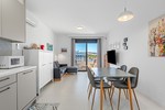 The property offers two bedrooms and two bathrooms and features a practical open layout that enhances the sense of space. Thanks to its southwest orientation, the apartment enjoys abundant natural light and pleasant afternoon and evening sun. The living area opens onto a balcony, an inviting spot to relax and enjoy the open surroundings.