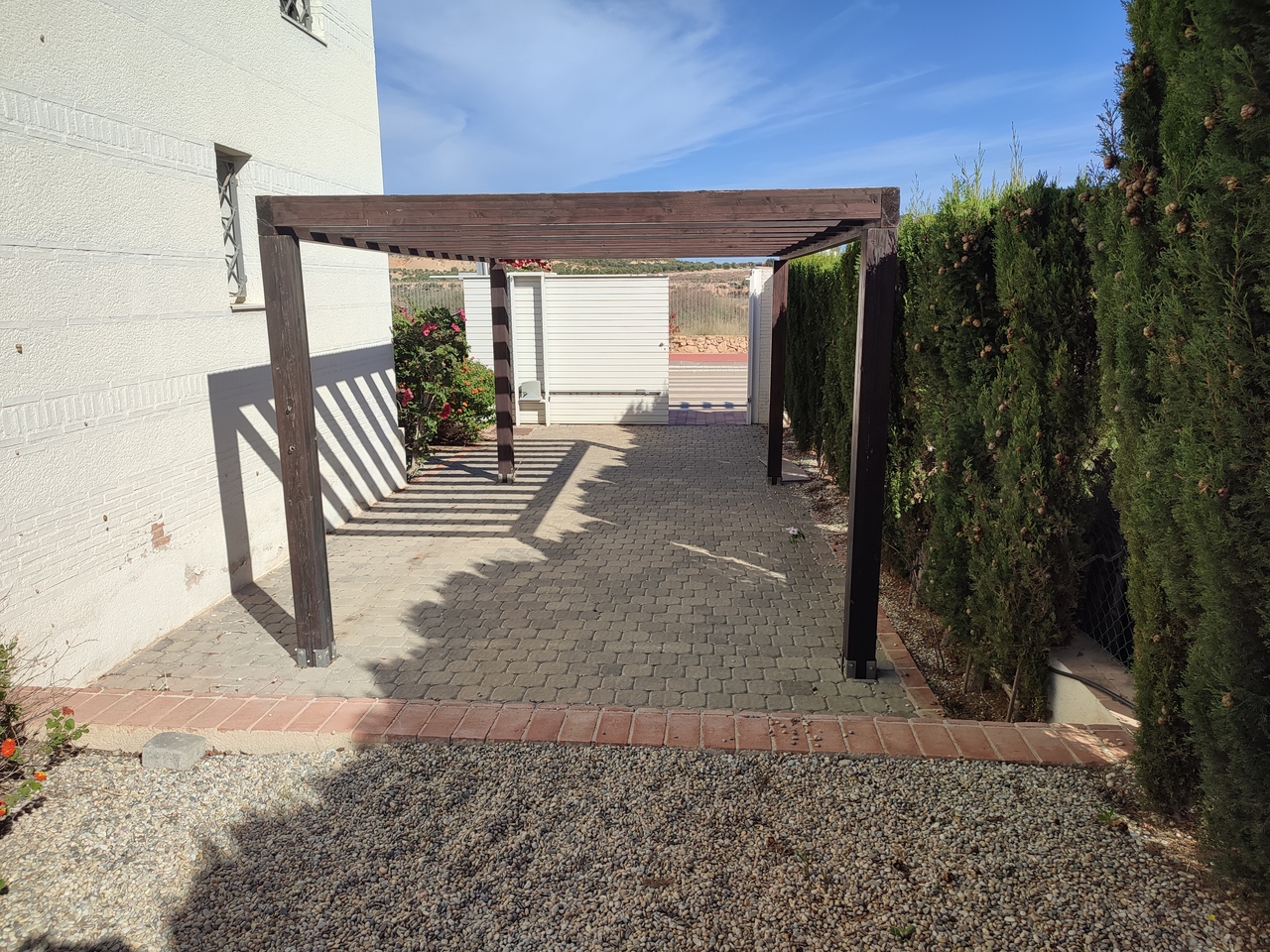 RESALE VILLA – Set on 3 levels there are 3 bedrooms and 2 walkin showers, plus terraces of the bedrooms. The living area has a fully fitted modern kitchen, open fire place creates a cozy lounge for the winter, with huge sliding doors opening out to the garden, terrace and private pool. This garden warps around the villa, there is a carport and parking in front of the house. This villa is being part furnished and ready to move into, however there is also the opportunity to extend, add rooms or change the layout. The villa by car is 30 minutes from the new Murcia International Airport and just over an hour from Alicante airport. The closest town of Sucina is 5 minutes away with San Javier and the beaches of the Mar Menor 15 minutes. The nearest city is Murcia City which is only a half hour drive away. UPDATE – Peraleja Golf Course, clubhouse and Piano Bar are currently closed, however it has been purchased by new investors and is on the pathway to a remarkable transformation, with renovations already underway on many of the unfinished properties. The golf course is expected to be well on the way to recovery towards the end of Autumn 2025 and may be in a condition ready for play in the first part of 2026. The new owners are also in active discussions with a number of interested parties for the reopening of the Clubhouse and Piano Bar. As part of the overall investment plan, the new owners now own much of the open area extending beyond the boundary of the golf course and are actively evaluating the opportunities for using that land as future recreational space. This is a great opportunity to buy a fantastic golf villa in the early stages of the redevelopment and secure it before the prices inevitably rise when the golf course, Clubhouse and Piano Bar reopen.