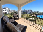 This South facing curved wall design apartment has a large terrace with amazing views over the gardens, pool, lake and golf course. It is in an excellent position only a minutes walk from the resort centre.Situated on the second floor it has a large upgraded kitchen with new appliances like boiler, washing machine, hob and integrated fridge freezer. Being a corner unit there is an extra window in lounge and dining area with patio doors leading to the outside to the sunny terrace. The bathroom has a window and been modernised with a walk in shower. Both bedrooms have modern ceiling fans, wardrobes and patio doors leading the back terraces.The property has air-conditioning in the living room for summer and central heating for the cooler winter months. The apartment is being sold furnished minus personal possessions. It would make an excellent holiday home or suitable for permanent living.The first thing that impresses you about Hacienda Riquelme Golf Resort is the wide-open spaces, the extensive gardens and the low-density construction, which create a relaxing environment to enjoy a very safe and peaceful life or holiday. The apartments are set out spaciously around the magnificent and challenging 18 hole golf course part of the Jack Nicklaus Golf Trail. In the heart of the resort you will find the beautiful renovated Hacienda where you will find a supermarket, clubhouse, restaurant and bar. The inner court yard becomes the hive of entertainment in the Summer, whilst the large terrace set in the stunning gardens is open all year for “al fesco” dining and drinking.Facilities:Gated Community.24 hour security.“El Cason” Bar, Restaurant, Clubhouse. “Sips” Coffee ShopSupermarket.Summer Entertainment.19 large community swimming pools.Communal gardens.Trees, 5 lakes.Wild flowers & local wildlife.Driving range & Golf ShopTennis courts.Paddle tennis courts.Football / Basketball court.Outside gym area.Children’s play areas.Hacienda Riquelme is very well connected by the main motorways. Murcia Airport (20 mins)Mar Menor beaches (15 mins)Mediterranean beaches (20 mins)For those who like historical buildings, architecture or a desire to shop, the lovely cities of Murcia and Cartagena provide plenty of entertainment. Murcia (30 mins)Cartagena (45 mins) Murcia Airport (20 mins)Near to the bustling popular village of Sucina with shops, restaurants, bars, chemist, supermarket and lots more (5 minutes)For more information on the apartments available please contact us.